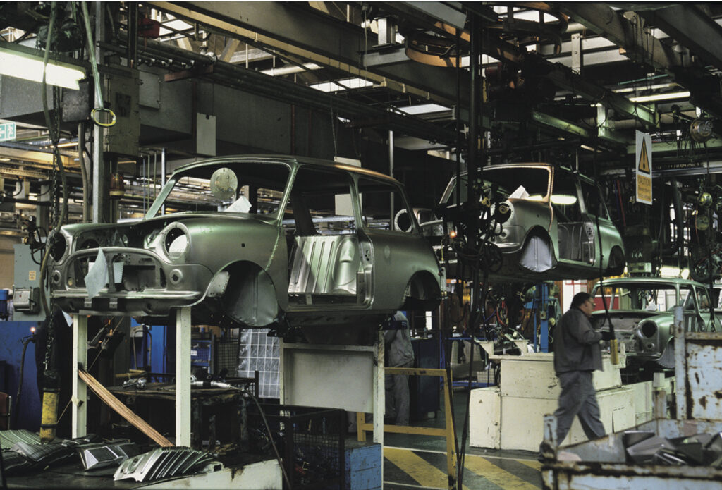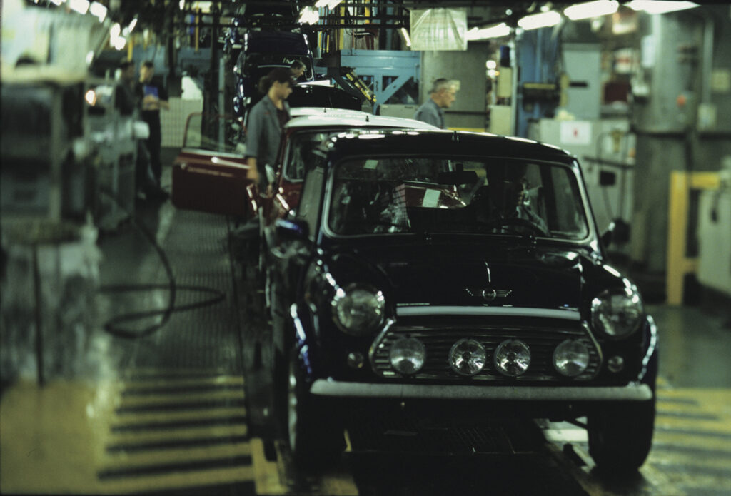 ミニの生産方式は、誕生当初は画期的なものであったが、40年近く過ぎた頃には、旧態依然と言われるものとなった。もちろんそれなりに進化は遂げていたものの、手作業で組み立てられる部分がまだかなり残っていたのだ。