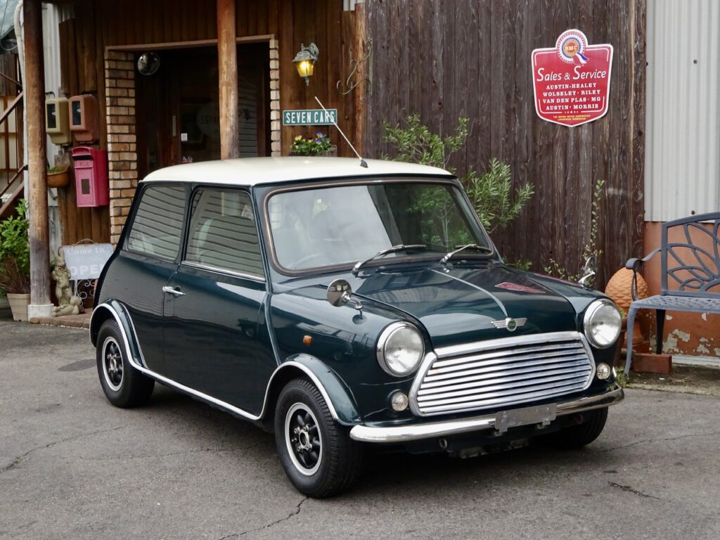 愛知県小牧市のミニ専門店、セブンカーズの在庫車両に、現在非常に魅力的なATミニがある。ボディカラーはレーシンググリーン、往年のワークスマシンに使われていたBRG(ブリティッシュ・レーシング・グリーン)にも通じる、英国車らしさを感じさせる伝統的なカラーだ。