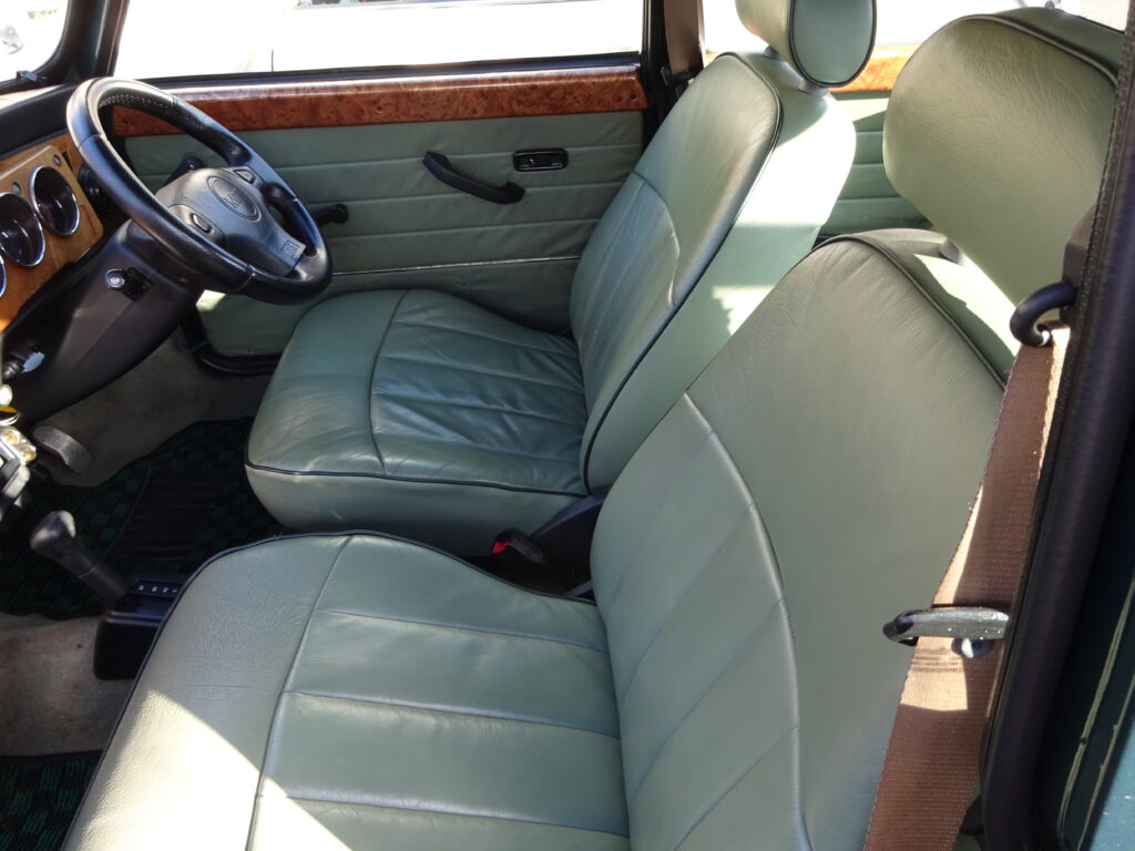 98年式のこの1.3iは、新車当時はヘリテイジコレクションの内外装を与えられた1台。ポーシュレイングリーンのレザーシートはコンディションもいい。レザー巻きのエアバッグステアリングのコンディションも表面に荒れは見えない。