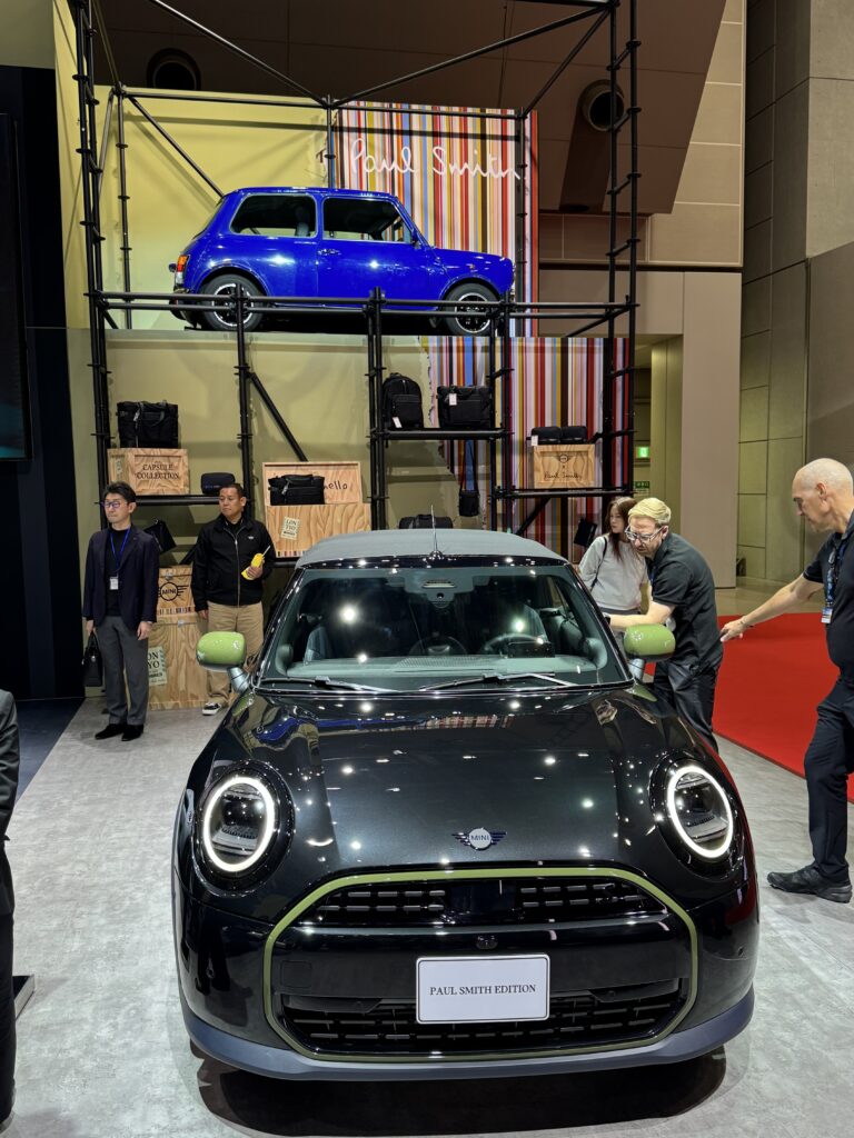 どうしてミニが飾られているのか。それはBMWミニに新たに設定された限定車「BMWミニ・ポール・スミス エディション」の発表に合わせて、レジェンド的扱いを受けているのだ。