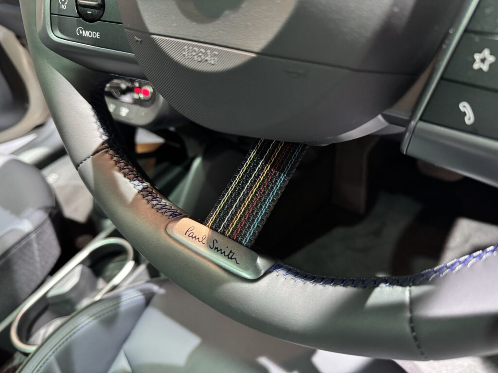 インテリアを見ても、ステアリングスポークやシートのステッチ、サイドシルのステップモールなどにポールスミスのお洒落ゴコロが込められている。
