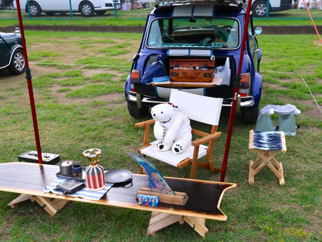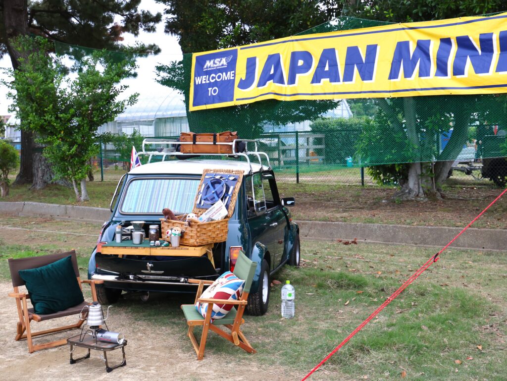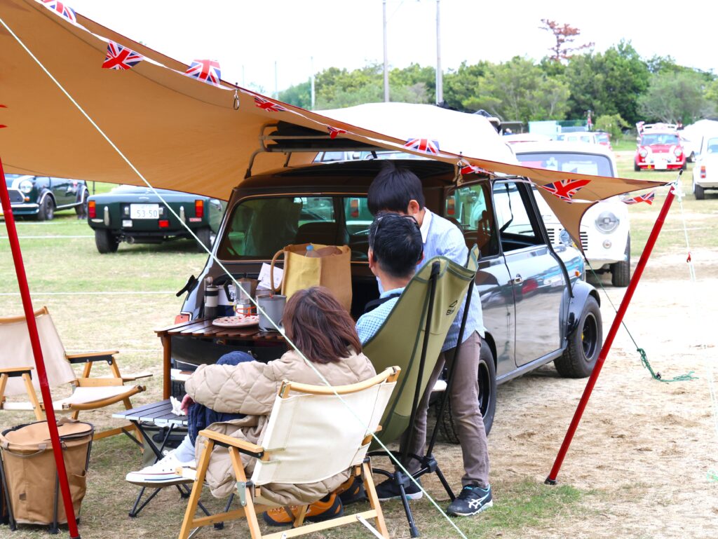 広大な芝生のキャンプ場は、ショップサイトとクラブサイト、キャンプサイトとファミリーサイトの4種類に分けられている。そのどのエリアもミニがいっぱいに敷き詰められて、パーツやグッズ、くつろぐためのテーブル&チェアが置かれてゆったりと過ごされている。