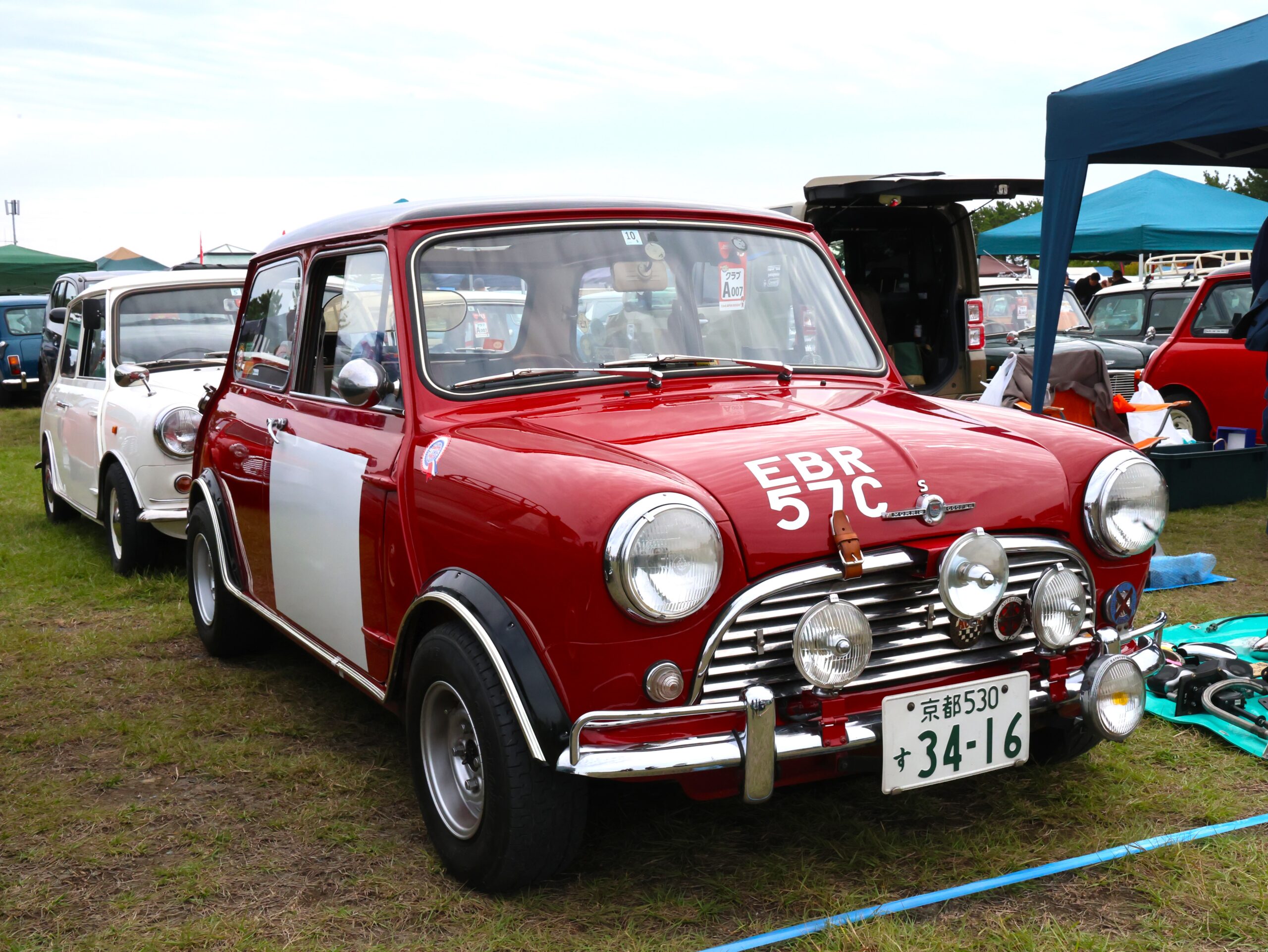 ジャパンミニデイの会場で「これ本物のMkIですよね。それにしてはナンバープレートが新しいですけど、最近購入されたんですか?」と尋ねてみた。「いや、以前は別のところに住んでて、所有してもう20年くらいになるんですよ」と、オーナーの塚辺さん。