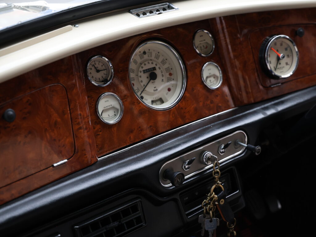 メーター周りなどは、自宅でイメージ図を書いてその通りにメーター類を配置してもらった。マグノリアのメーターがボディカラーとマッチして、何とも上品でクラシカルなムードだ。
