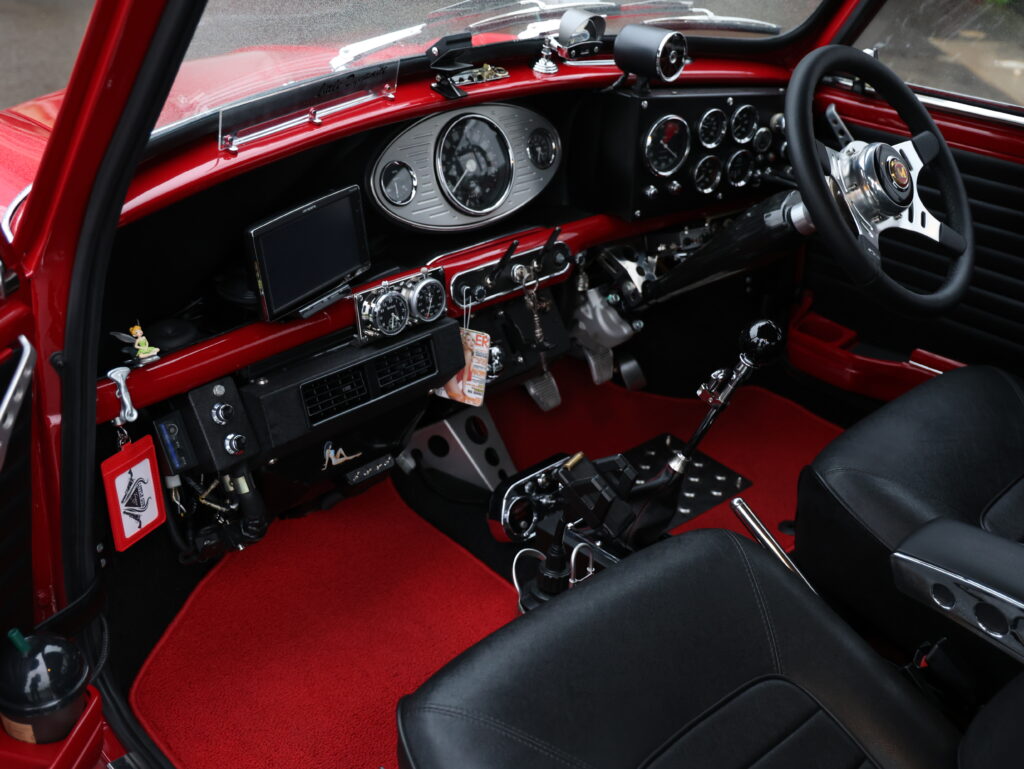 もう外装を仕上げてもう11年目になるが、ガレージ保管と小島さんの手の掛け様から、そのコンディションは極上のまま。むしろ赤いジョンクーパーミニは光り輝き、その存在感は増すばかりだ。