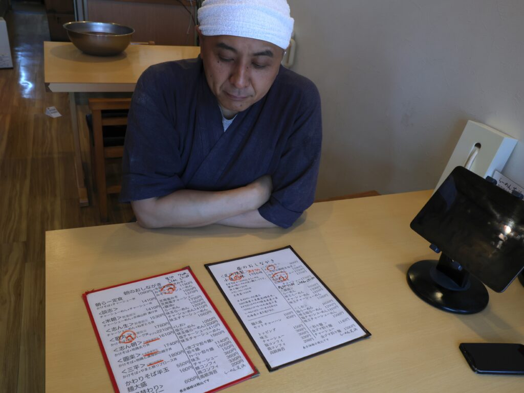 「小麦三昧というメニューが人気なんです」そう言ってメニューを見せてくれたのは、店主の高橋亮雄さん。しかし残念ながら、取材時(平日午後1時頃)は麺が売り切れとなっており、注文することはできなかった。