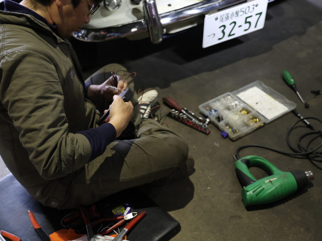 実際には取り付け部分の裏側スペースまで確認して打ち込むビスの長さまで調整し、結線もしっかりとした工具で確実に行うなど、丁寧な仕事ぶり。大事なミニを整備してもらうのも、これなら安心だ。