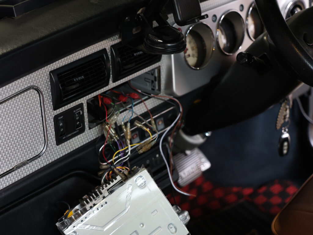 すぐそばには室内へとハーネスを引き込むグロメットもあって、ピンポイントで好条件なスペースが見つかった。そうなれば結線とブラケット装着のビス打ち込みで取り付けは可能。
